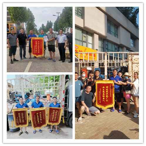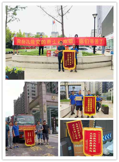 苏州智辉公共事务管理有限公司自7月21日以来,在郑州各个小区组织地下室排水工作24小时不间断轮班制的深水里进行排水作业,各被救援小区居民争相制作锦旗感谢神龙排涝突击队。